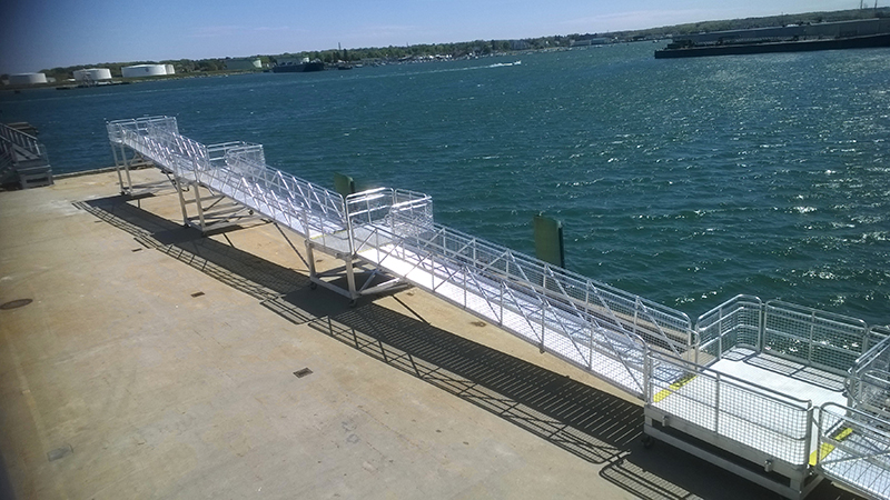 Maine State Pier passenger boarding gangway system with wire mesh infill. |
