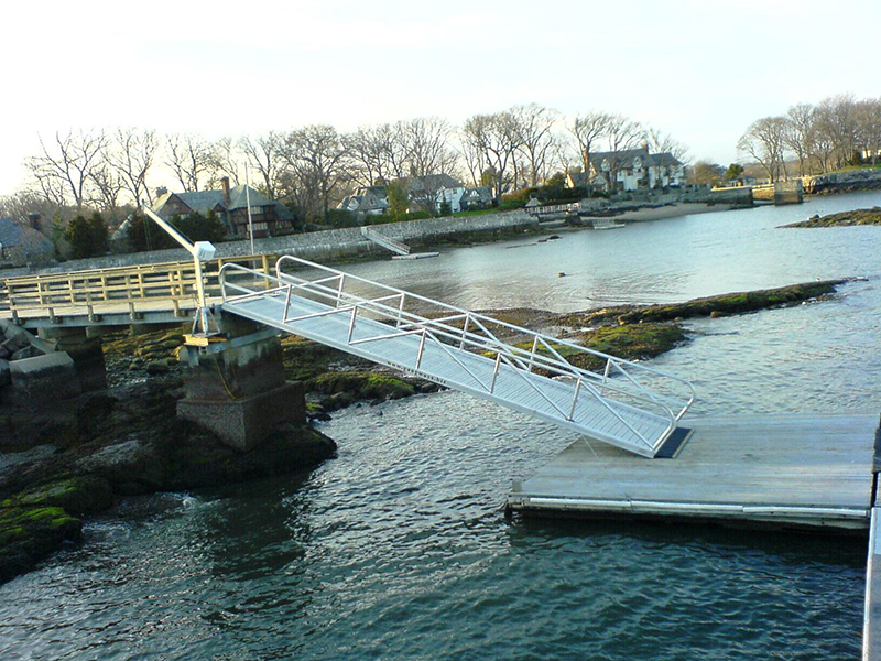 The 30' x 6' heavy duty aluminum gangway installed at the Larchmont Yacht Club.