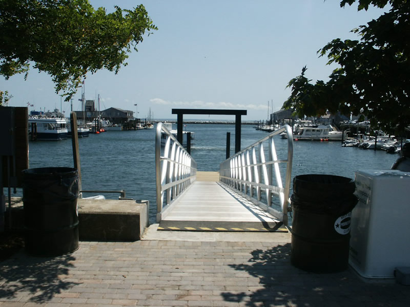 This 80' long by 5.5' wide heavy duty aluminum gangway is located at the Provincetown Public Pier in Provincetown, Massachusetts. |